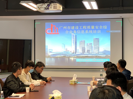 【概要描述】2021年1月22日下午2点,广东财贸建设工程顾问有限公司项目管理中心在一号会议室组织召开广州市建设工程质量安全综合业务信息系统培训会,项目管理中心领导、各上线项目诚信平台维护人员、其他项目监理人员和其他员工出席了本次会议。