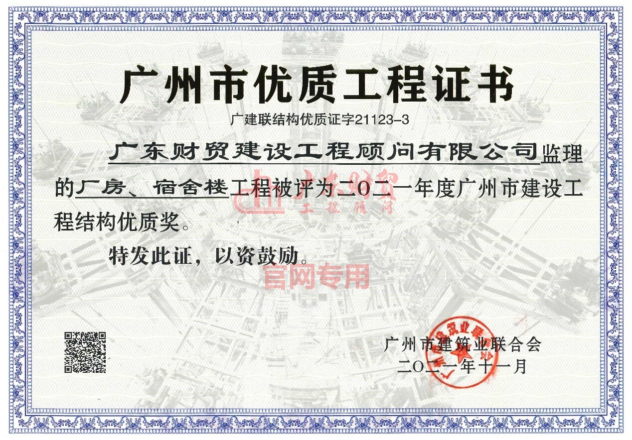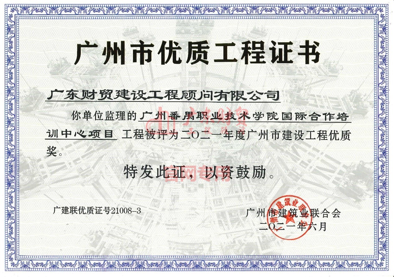 近日,广东财贸承接的多个项目获得广州市建设工程安全文明绿色施工样板工地、广州市建设工程结构优质奖、广州市建设工程优质奖等多个重大荣誉。