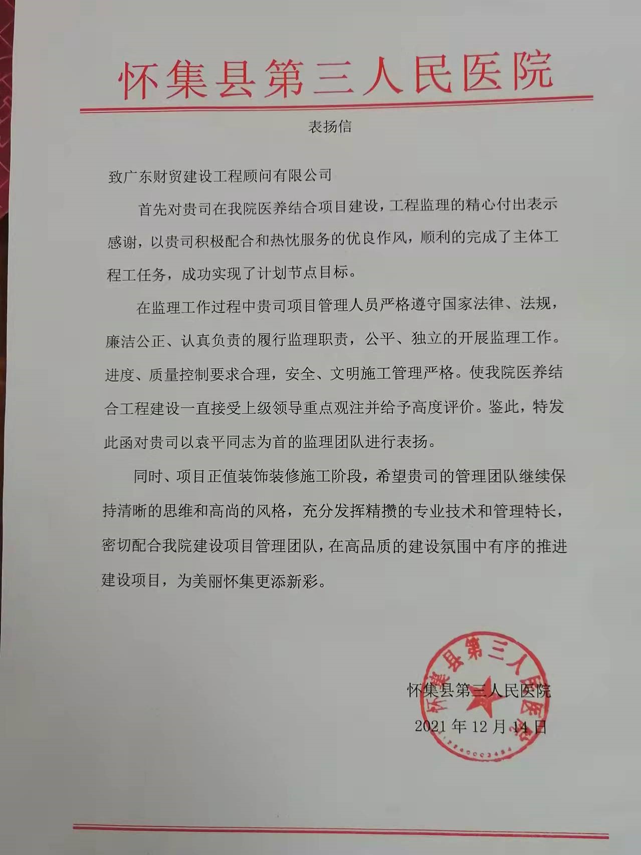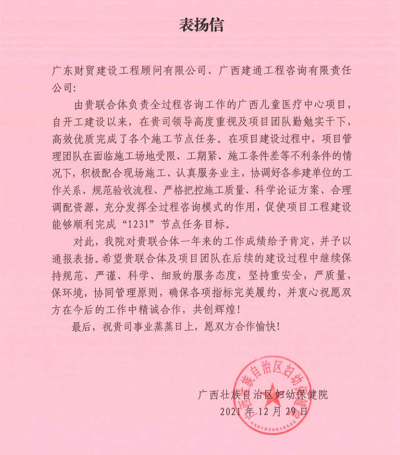 近期,我司多个工程项目收到来自建设单位的表扬信,信中着重肯定了我司各项目负责人认真负责的工作态度与良好的组织能力,并对我司各项目部全体人员表达由衷的感谢之情。