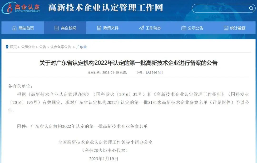近日,国家高新技术企业管理工作网发布了《关于对广东省认定机构2022年认定的第一批高新技术企业进行备案公示的通知》,广东财贸建设工程顾问有限公司榜上有名,再次成功认定为高新技术企业。
