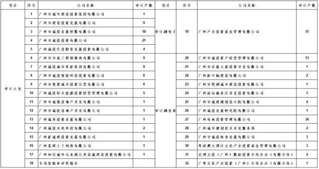 1、本项目划分为3个标包,广州市城市建设投资集团有限公司以各相关直属企业为单位,分别划分成以下3个标包,每个标包由1家会计师事务所中标,中标机构负责该直属企业下属所有级次企业的年度财务决算工作;