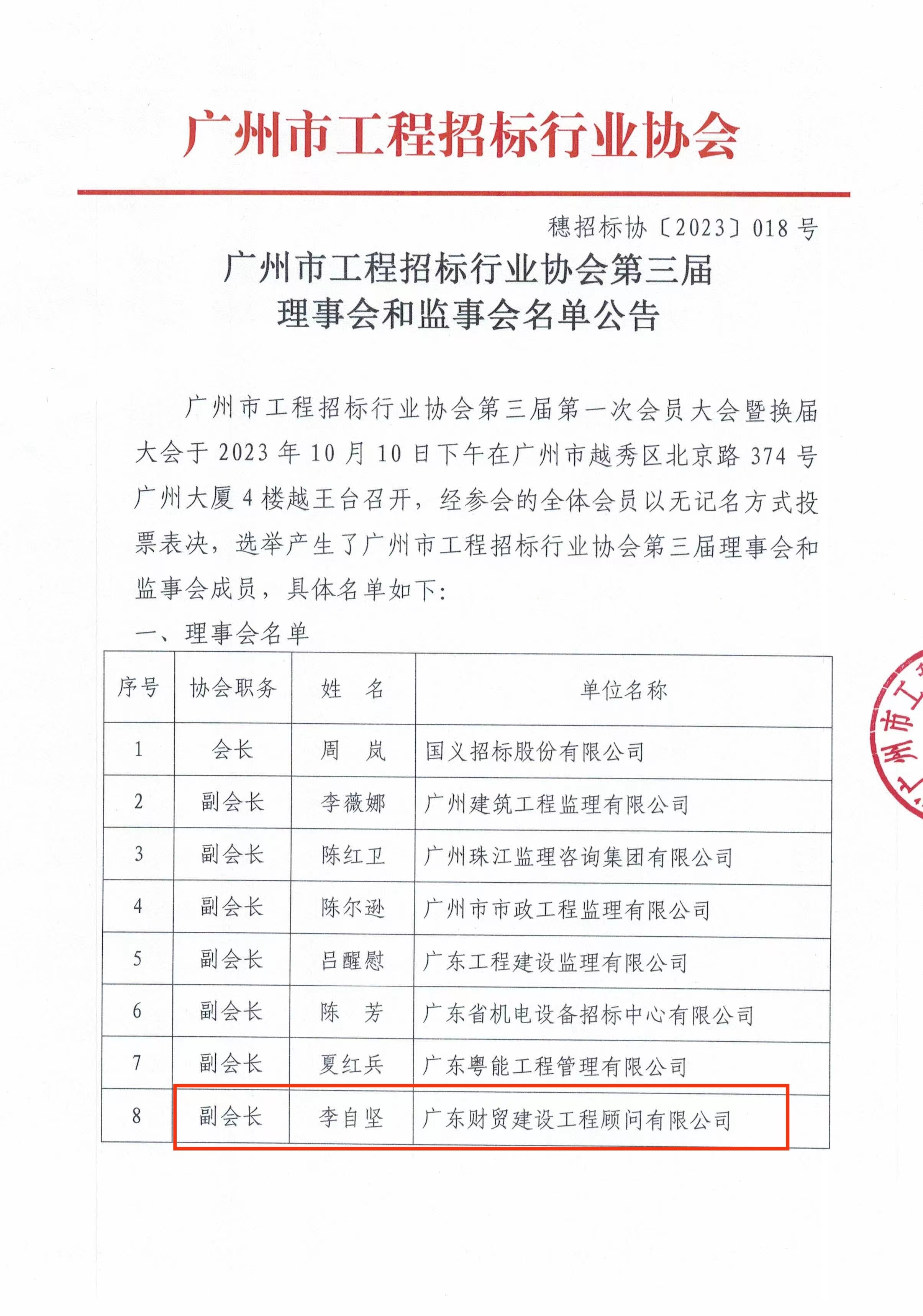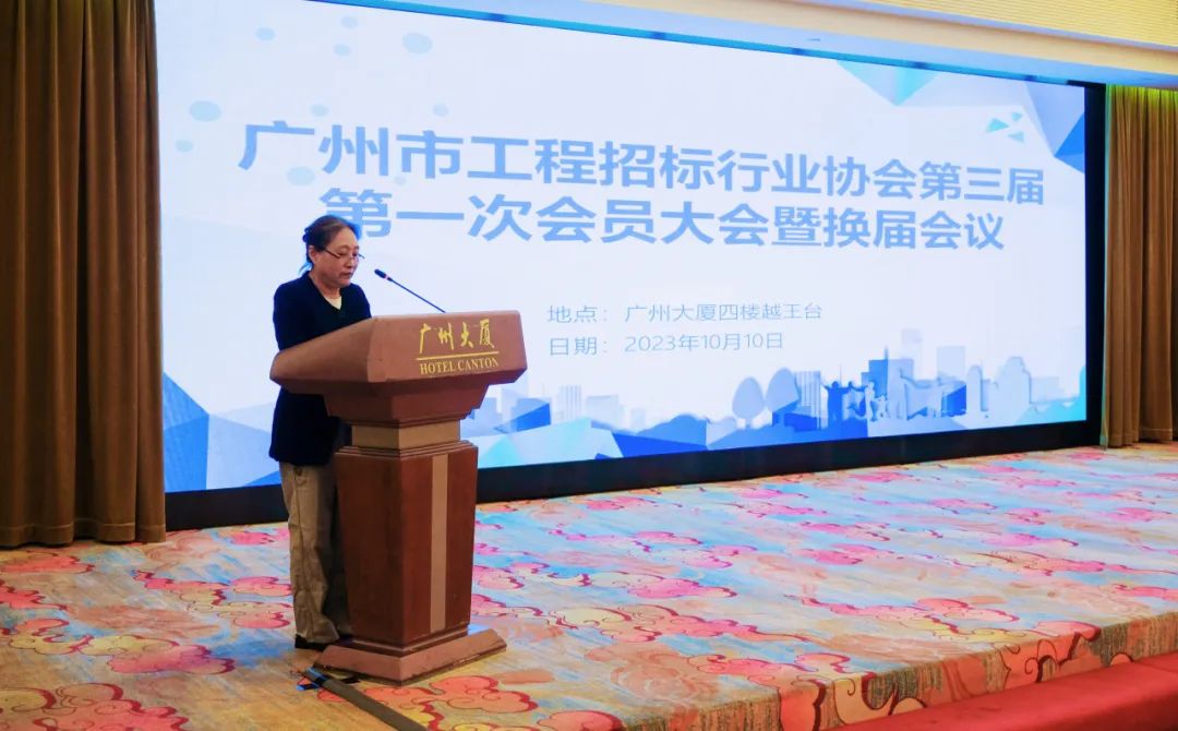 近日,广州市工程招标行业协会召开第三届第一次会员大会暨换届大会,秘书长刘婕同志主持本次会议,我司副总经理李自坚出席会议。