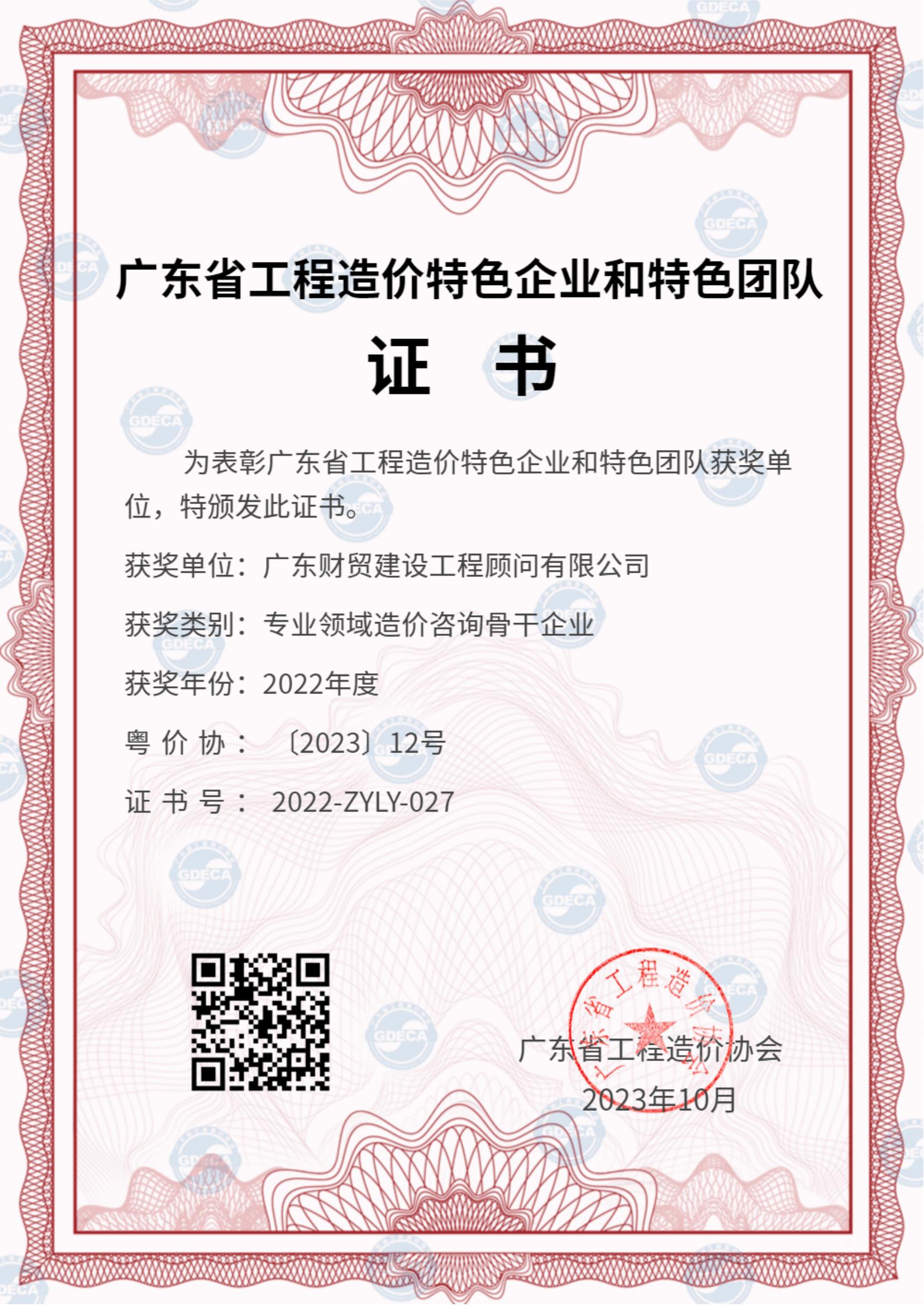 近日,广东省工程造价协会公布了关于“2022年度广东省工程造价特色企业和特色团队”的评选结果,我司荣获“品牌造价咨询企业”、“造价大数据应用研究团队”、“专业领域造价咨询骨干企业”三项称号。