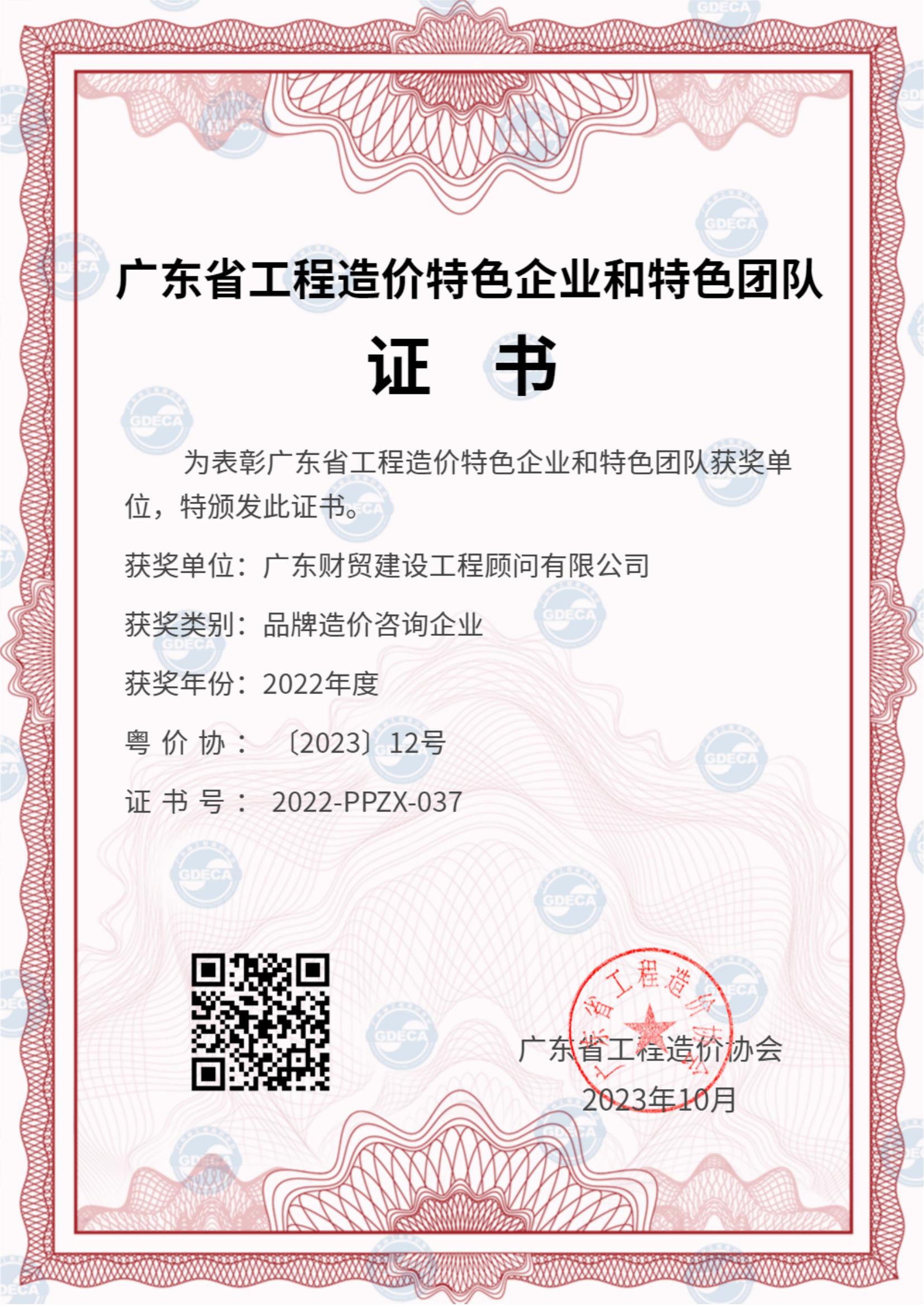 此次殊荣的获得,是对我司管理体系、专业能力和造价咨询成果的肯定。载誉前行,不负荣光,在高质量发展征程中再接再厉,勇争先锋。未来,广东财贸会持续依托公司强大的数字化信息平台和专业的人才团队,开拓全过程工程咨询市场,扩大行业影响力,优化服务质量,多元创新发展,向高端咨询服务不断进发。