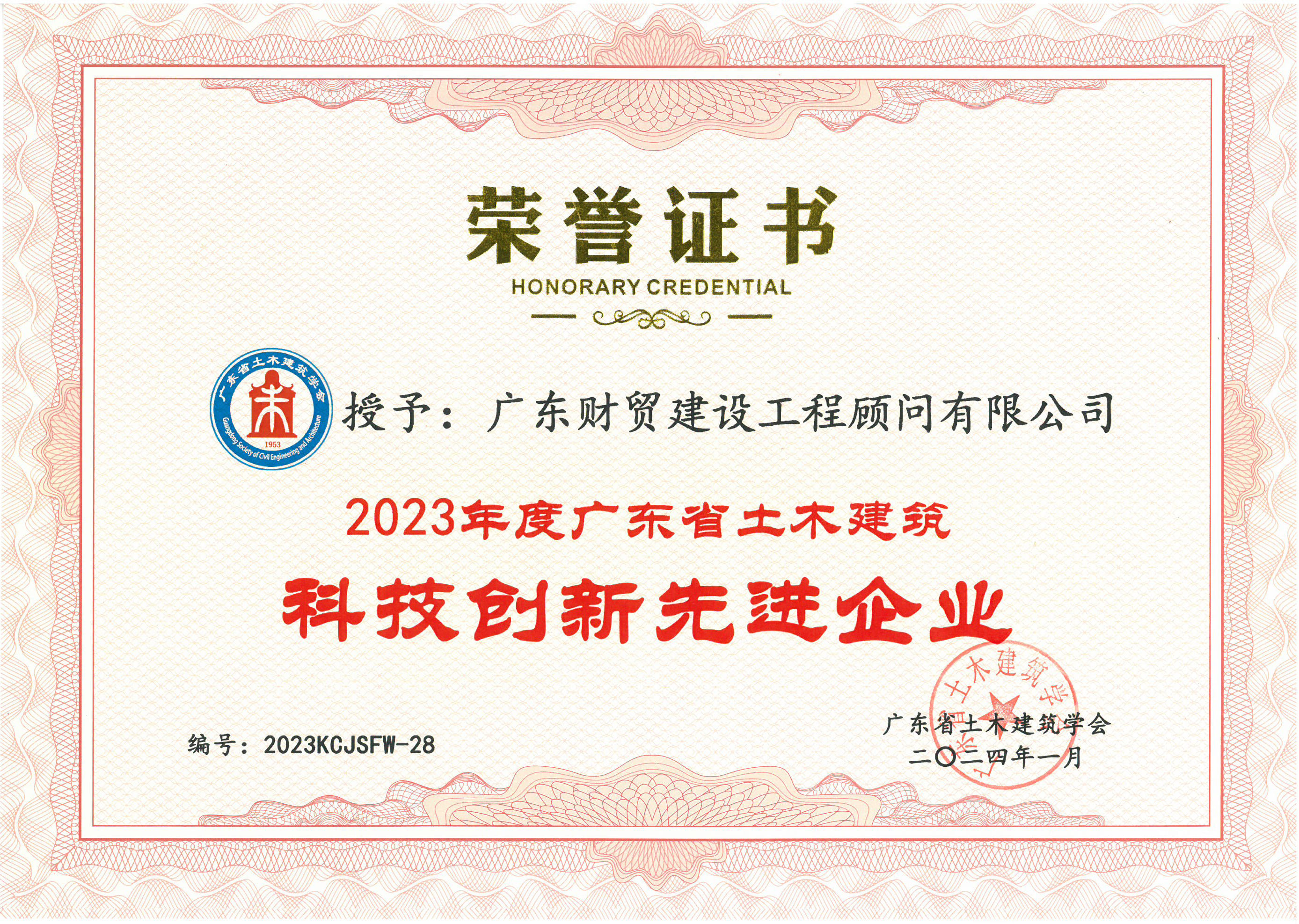 近日,广东省土木建筑学会2023 年度广东省土木建筑企业及个人科技创新评价活动结果出炉,广东财贸建设工程顾问有限公司荣获“2023 年度广东省土木建筑科技创新先进企业”,总经理梁华同志荣获“2023年度广东省土木建筑优秀科技工作者”。