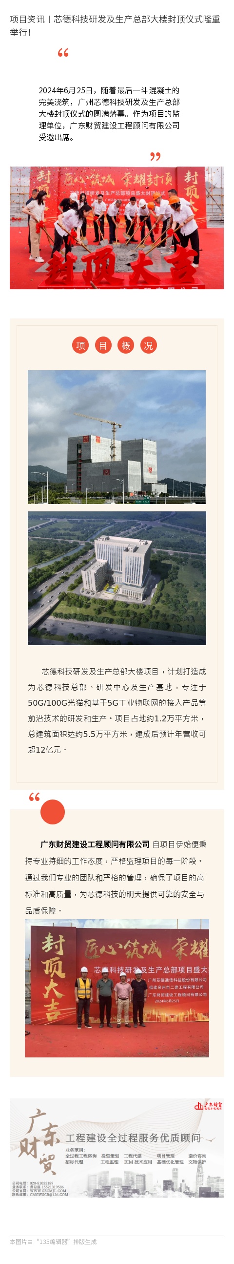项目资讯︱芯德科技研发及生产总部大楼封顶仪式隆重举行!