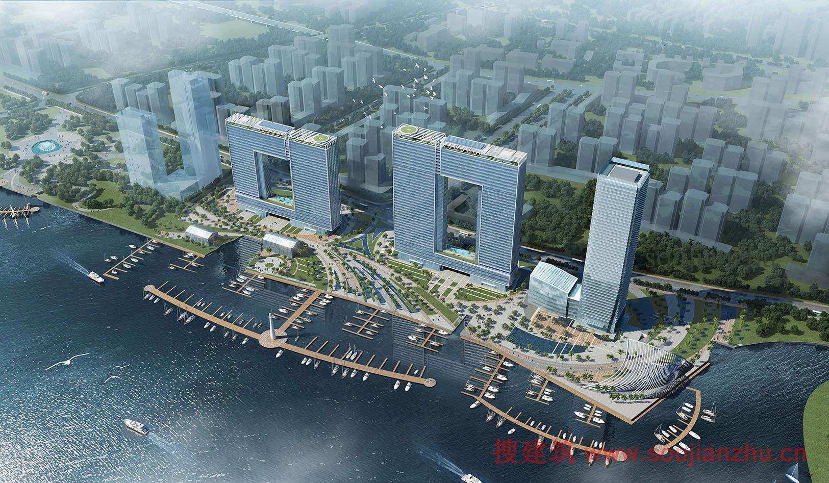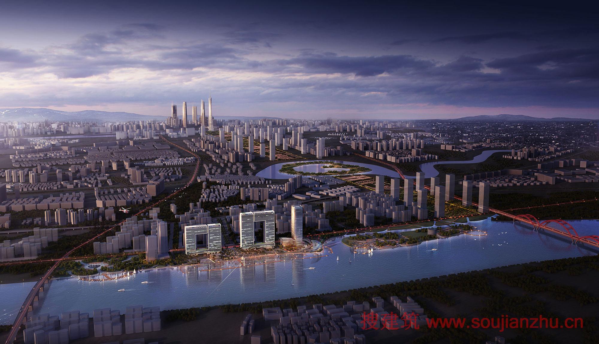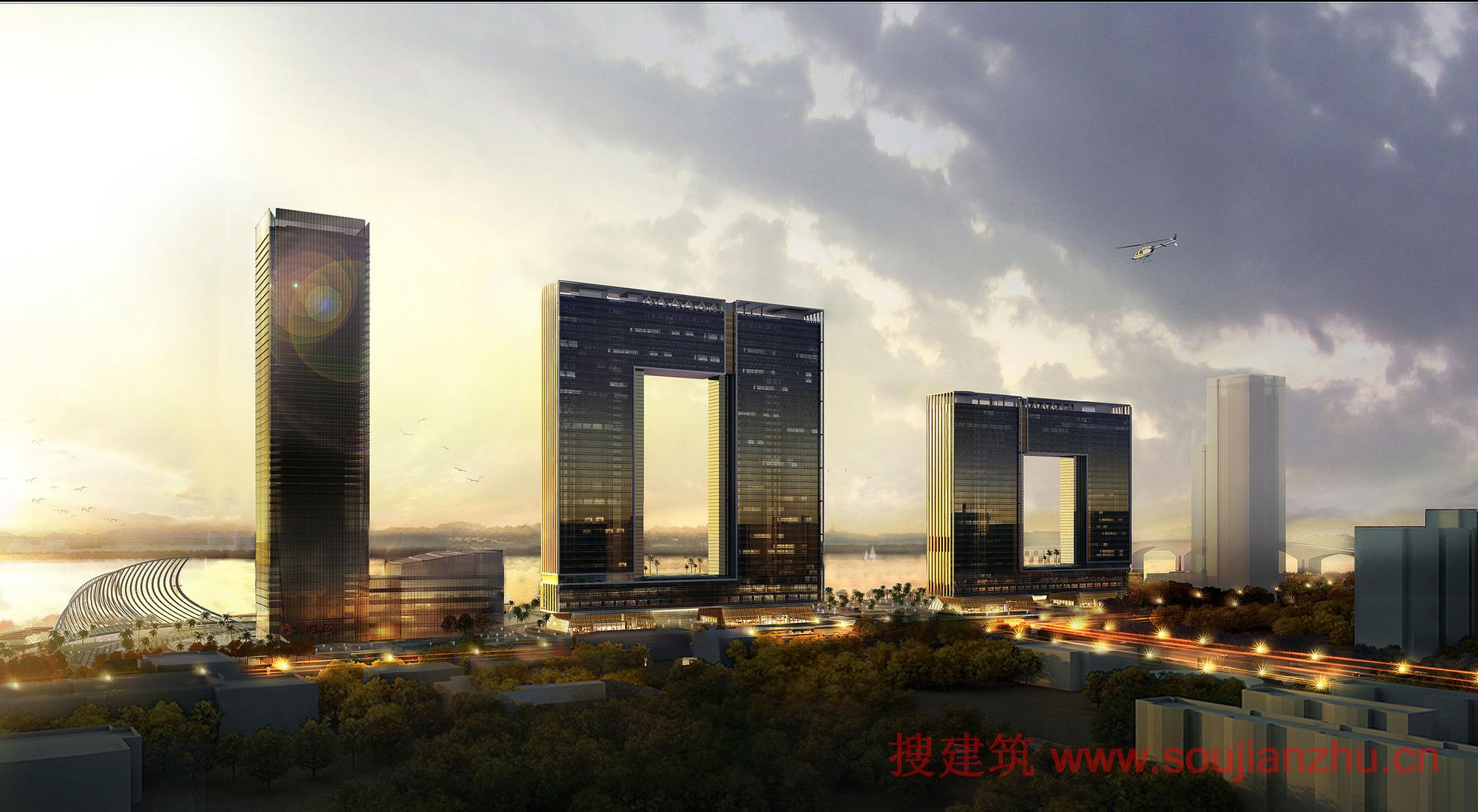“广州市珠江边富有特色的新地标性建筑,西往东排列“001”,由东往西呈“100””